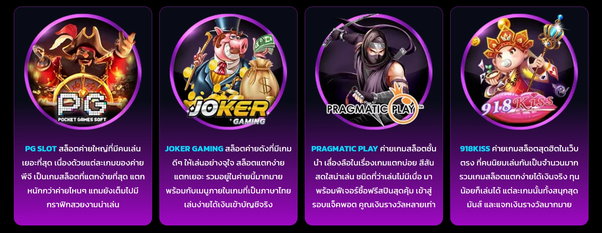 ตอบโจทย์แก่ผู้เล่นทุกท่าน ที่ต้องการเล่นเกมส์หลายค่าย ทาง สล็อตเว็บตรงไม่ผ่านเอเย่นต์ 2024 ของเรา ได้รวบรวมสล็อตค่ายใหญ่ มาให้เล่นทั้งหมดแล้ว และที่สำคัญล้วนแต่เป็น เกมสล็อตแตกง่ายทั้งสิ้น ไม่ว่าจะเล่นเกมไหนจากค่ายไหน ก็เตรียมลุ้นเงินรางวัลก้อนโตกันได้เลย แต่ก่อนที่จะไปเริ่มเล่นค่ายเกมสล็อตเว็บตรง ไปดูกันก่อนว่ามีค่ายอะไรที่น่าสนใจบ้าง